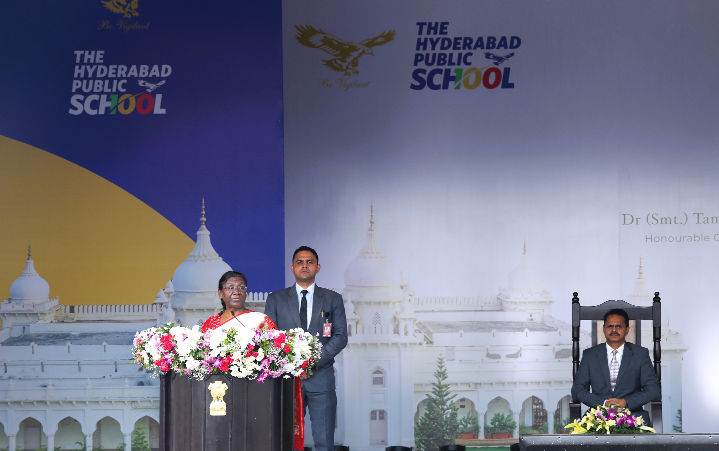 Sharing her profound thoughts on the centenary of The Hyderabad Public School, Begumpet, Her Excellency Hon’ble President of India, Smt. Droupadi Murmu said, “Many great personalities are alumni of this school. For any institution centenary year is worth celebrating. In the long 100 years academic institutions could face many challenges. Based on its experiences, The Hyderabad Public School empowers and equips the students to be strong decision-makers. I have learned that academic excellence and character-building have been at the core this school. This school has inspired many students and has fetched great recognition to the country. I felt a deep sense of pride while exploring the school’s museum, which beautifully displays its rich history. I have learned that this school emphasizes innovation and critical thinking which strengthens the foundation of the students. I appreciate The Hyderabad Public School for creating an environment which encourages students from diverse backgrounds to study together and learn from each other. To build a strong school curriculum framework, the stakeholders should also consider life-skills as laid out by NEP 2020 that will foster technical skills and emotional strength to face any crisis. The students should cultivate compassion and empathy and work towards the progress of other people as well. In life, it’s essential to consistently pursue one’s passions, as this fosters positive energy and serves as inspiration for others. I congratulate the school on its Centenary year and extend my wish that this institution may always achieve great heights.”