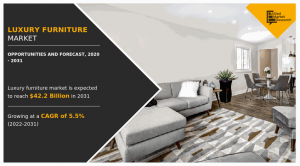 According to a new report published by Allied Market Research, titled, “Luxury Furniture Market,” The luxury furniture market size was valued at $23,771.90 million in 2020, and is estimated to reach $42,159.40 million by 2031, growing at a CAGR of 5.5% from 2022 to 2031. Growth in online mode of sale, rapid urbanization, and change in lifestyle, owing to increased disposable income of the consumers drive the luxury furniture market growth. In addition, development in Asia-Pacific and LAMEA is anticipated to create lucrative global luxury furniture market opportunities.