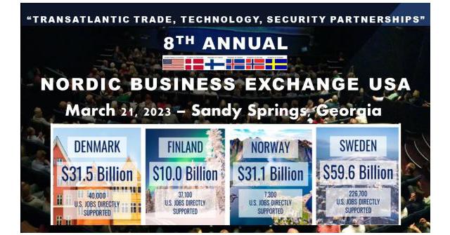 The bilateral Nordic Chambers of Commerce, Nordic Business Exchange, and SMART Community Exchange will host the 8th Annual Nordic Business Exchange (smartcommunityexchange.com) in Sandy Springs, Georgia, March 21-22, 2023.