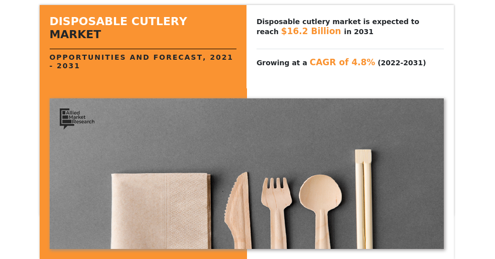 PORTLAND, 5933 NE WIN SIVERS DRIVE, #205, OR 97220, UNITED STATE, October 3, 2023 /EINPresswire.com/ — According to a new report published by Allied Market Research, titled, “Disposable Cutlery Market,” The disposable cutlery market was valued at $10.1 billion in 2021 and is estimated to reach $16.2 billion by 2031, growing at a CAGR of 4.8% from 2022 to 2031.