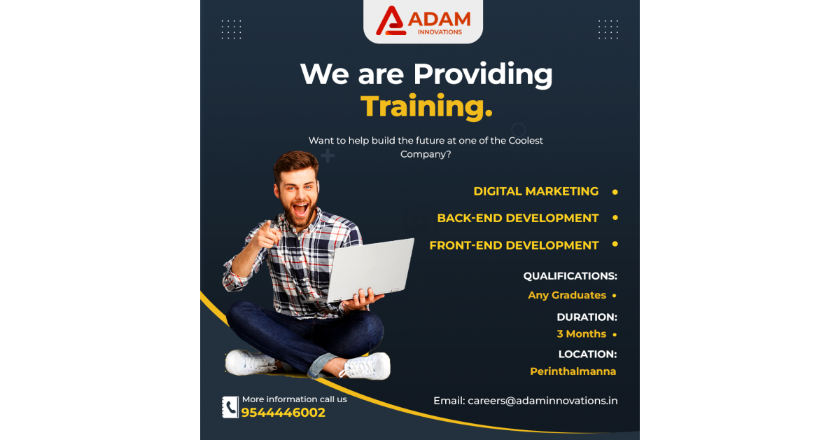 PERINTHALMANNA, KERALA, INDIA, March 27, 2023/EINPresswire.com/ — Adam Innovations, a well-known digital marketing and website development company based in India, is currently offering a valuable training opportunity for individuals who are passionate about technology and interested in pursuing a career in digital marketing, front-end development, or back-end development.