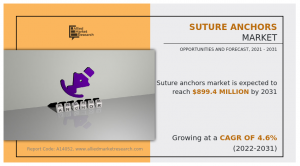 PORTLAND, OREGON, UNITED STATES, July 20, 2023/EINPresswire.com/ — The Suture Anchors Market has witnessed substantial growth in recent years, driven by the increasing prevalence of sports injuries and orthopedic conditions requiring soft tissue repair. Suture anchors are medical devices used in arthroscopic and open surgeries to anchor sutures securely to bone, facilitating the reattachment of tendons or ligaments. These anchors offer advantages such as improved fixation strength, reduced surgical time, and enhanced postoperative outcomes. As advancements in material science and surgical techniques continue, suture anchors are becoming more versatile, catering to a broader range of applications, including rotator cuff repairs, labral repairs, and ligament reconstructions. The global suture anchors market size was valued at $572.5 million in 2021, and is projected to reach $899.4 million by 2031, growing at a CAGR of 4.6% from 2022 to 2031.