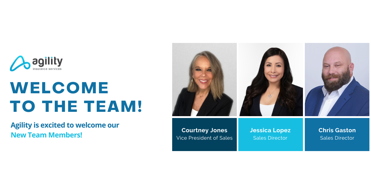 Courtney Jones comes on board as the new vice president of Sales. Jessica Lopez joins us as a Sales Director. Last but not least, Chris Gaston also joins the team as a Sales Director. Agility Insurance Services looks forward to welcoming these new team members in January 2023.