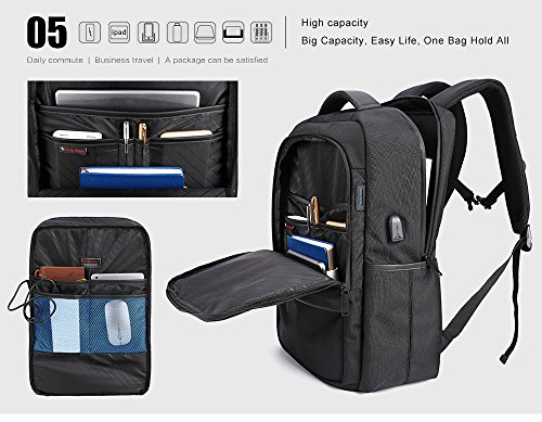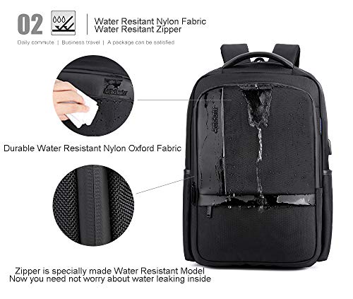 DURABLE MATERIAL & SOLID: Made of Water Resistant and Durable Polyester Fabric with metal zippers. Ensure a secure & long-lasting usage everyday & weekend. Serve you well as professional office work bag, slim USB charging backpack, college, school , student backpack for boys, girls, teens, adults.