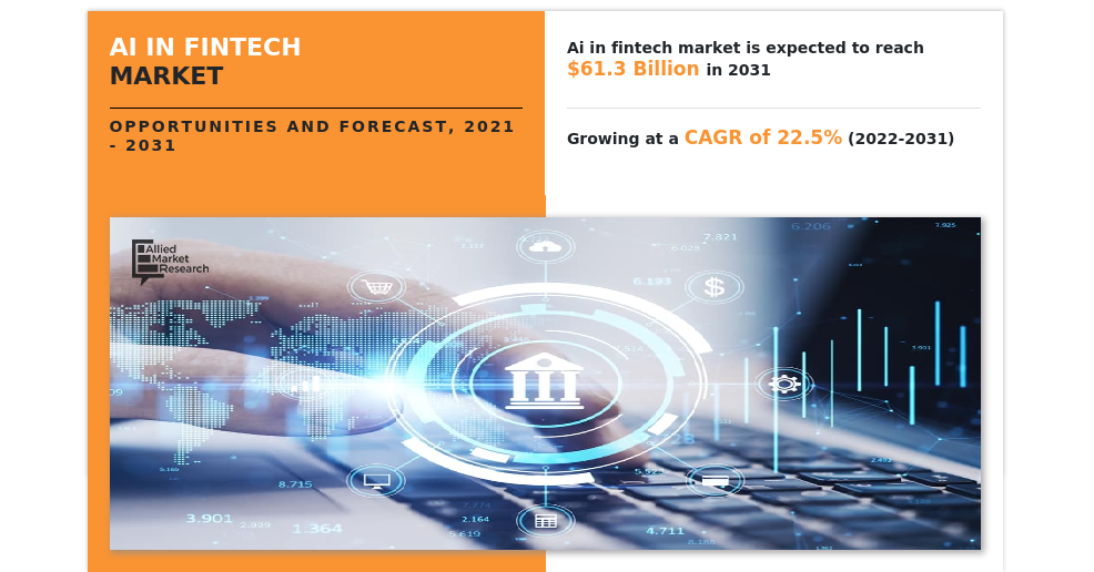 PORTLAND, OREGAON, UNITED STATES, October 18, 2022 /EINPresswire.com/ — Allied Market Research printed a report, “AI in Fintech Market by Component (Solution, Services), by Deployment Mode (On-premise, Cloud), by Application (Virtual Assistants (Chatbots), Business Analytics and Reporting, Customer Behavioral Analytics, Others): Global Opportunity Analysis and Industry Forecast, 2021-2031”.
