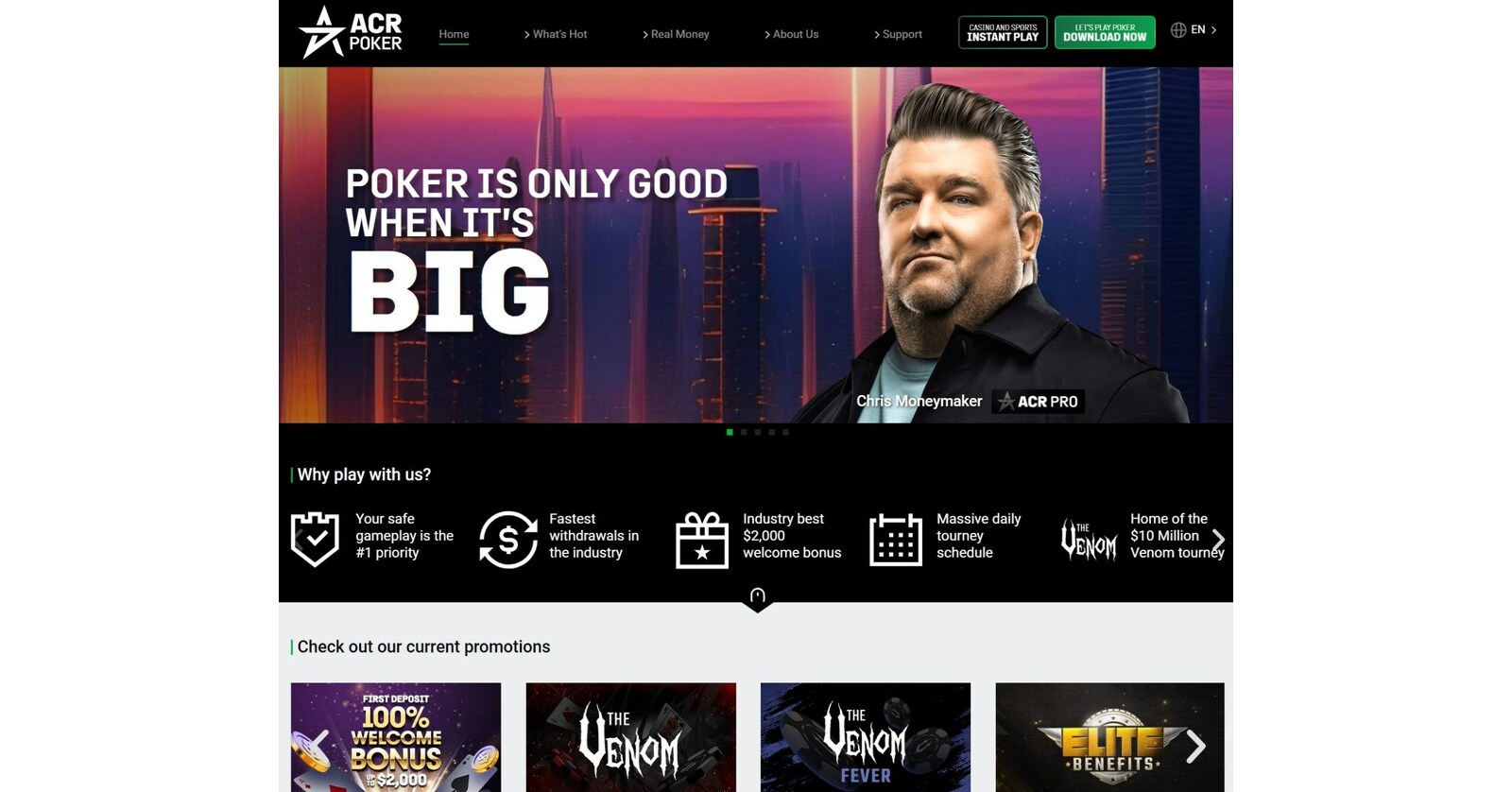 ACR believes that big poker is the best poker, so want to make the experience on ACR great for all players from recreational players to professional players.