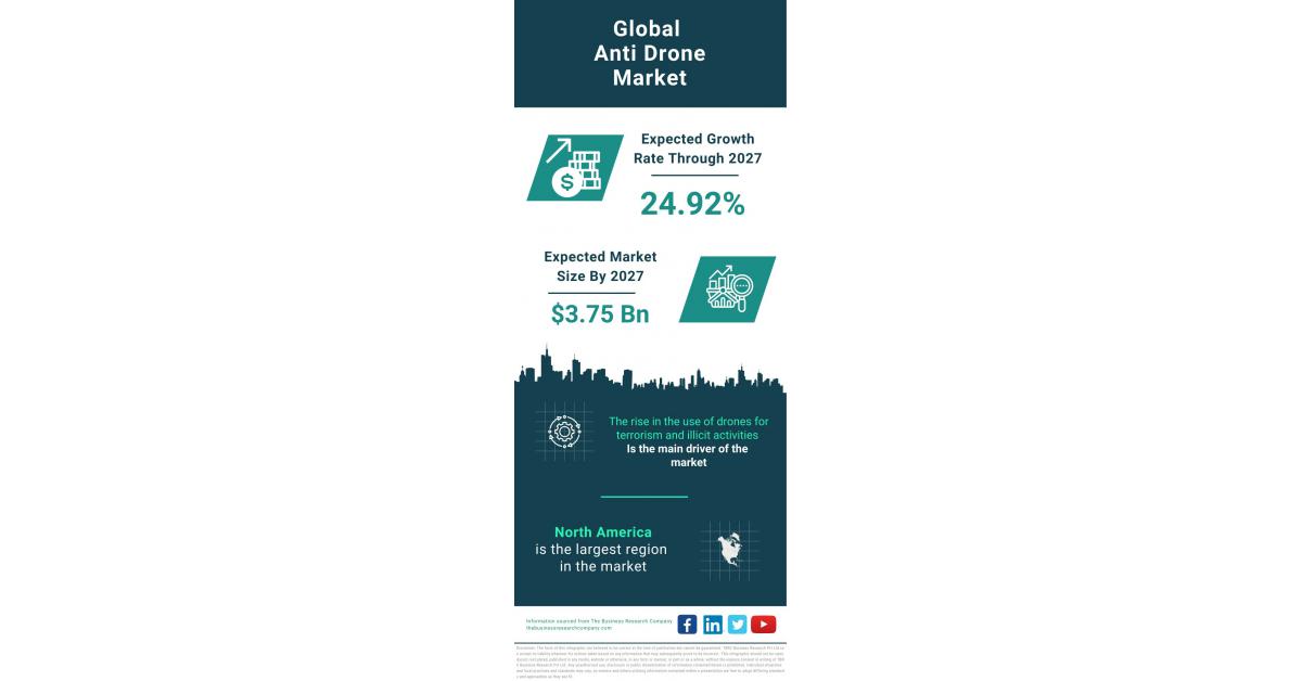 The “Anti Drone Global Market Report 2023” by The Business Research Company serves as a comprehensive source of information covering all aspects of the anti-drone market. According to TBRC’s forecast for the anti-drone market, it is anticipated to reach a market size of $3.75 billion by 2027, with a remarkable compound annual growth rate (CAGR) of 24.92%.