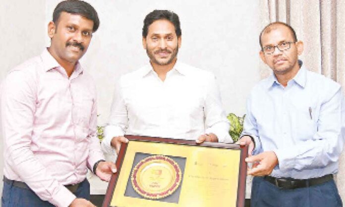 Vijayawada: Andhra Pradesh received national level award for implementation of YSR Free Crop Insurance Scheme. The officials, including special chief secretary of agriculture Gopal Krishna Dwivedi and special commissioner Harikiran met Chief Minister Y S Jagan Mohan Reddy at camp office here on Friday and showed the award presented by the Government of India.