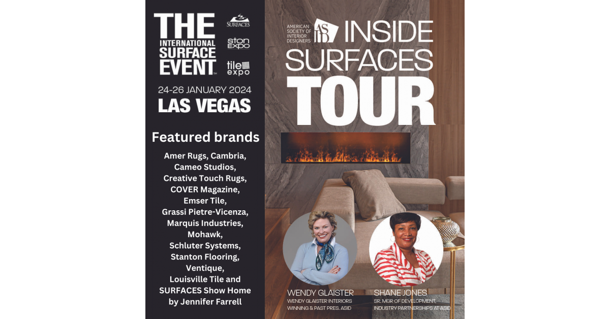 LAS VEGAS, NEVADA, UNITED STATES, January 23, 2024 /EINPresswire.com/ — ASID Inside SURFACES Tours is announcing the 13 brands selected for its inaugural series of tours taking place during The International Surface Event (TISE), on January 24-26, 2024 at the Mandalay Bay Convention Center in Las Vegas, NV.