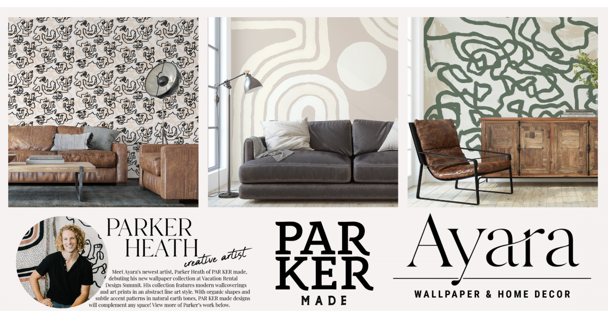 Tasha Brown, co-founder of Ayara shares, “Our team is thrilled to announce our collaboration with PAR KER made, and to be debuting artist Parker Heath’s original wallcovering designs during the VRD Summit.”