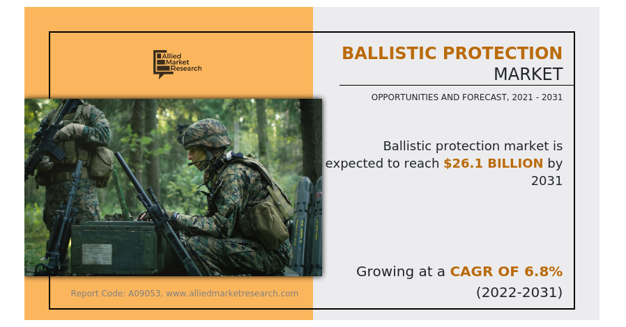OREGAON, PORTLAND, UNITED STATES, May 15, 2023 /EINPresswire.com/ — According to a new report published by Allied Market Research, titled, “Ballistic Protection Market,” The ballistic protection market was valued at $14 billion in 2021, and is estimated to reach $26.1 billion by 2031, growing at a CAGR of 6.8% from 2022 to 2031.