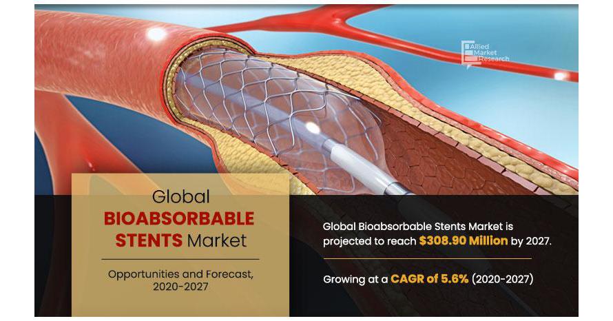 PORTLAND, OREGON, UNITED STATES, May 13, 2023 /EINPresswire.com/ — Bioabsorbable stents, also known as biodegradable or resorbable stents, are a revolutionary advancement in interventional cardiology. Unlike traditional metallic stents, which are permanent implants, bioabsorbable stents are designed to gradually dissolve and be absorbed by the body over time. These stents are typically made from materials such as polylactic acid (PLA) or polyglycolic acid (PGA) that are biocompatible and naturally broken down by the body. The global bioabsorbable stents market size was valued at $283.60 million in 2019, and is projected to reach $308.90 million by 2027, registering a CAGR of 5.6% from 2020 to 2027.