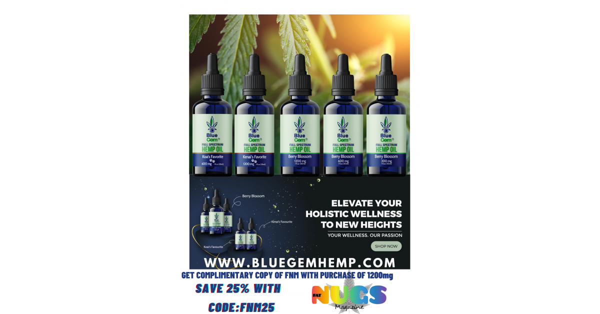 DEERFIELD, IL, UNITED STATES, January 21, 2023 /EINPresswire.com/ — Blue Gem Hemp announces a limited time offer to kick start 2023 for their valued customers. In support of authentic and independent cannabis publication, a complimentary copy of Fat Nugs Magazine will be given to the customers with purchase of 1200mg organic premium full spectrum hemp oil + 25% discount with the code: FNM25.