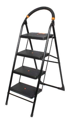 Overview Warehouse, godowns, libraries, etc require ladders for easy access to heights above the normal reaching position of a person. BRANCO folding ladder with 4 wide steps is one such equipment suited for such places for easy access to the places that are normally out of reach. Heavy Duty Made from Mild steel pipes and powder coated to a classic black colour, this strong mild steel ladder has heavy duty performance thanks to its ergonomic design and the quality material used in its manufacture. It has a cushioned top arch that allows a better grip for comfort and for safety. Anti-skid ladder Keeping safety in mind, this anti-skid ladder has rubber boots that give a firm grip on the ground without sliding. Also, the Polypropylene Copolymer Steps are 20×37 cm wide which gives good space for resting the feet while climbing and the top platform has a dimension of 25 x 37 cm. The safety clutch lock keeps the platform locked for safety. Foldable Ladder Ideal for office use, warehouses and other places, It is corrosion free and has a long lasting life. So hurry and book your piece now.