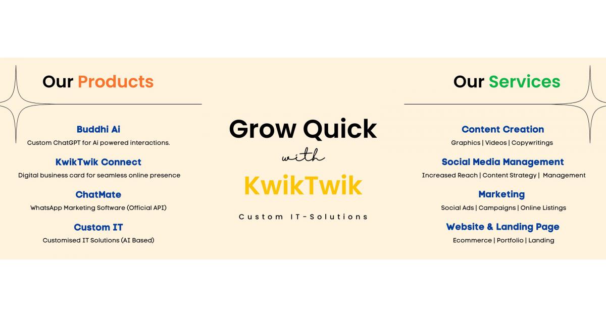 NAGPUR, MAHARASHTRA, INDIA, July 9, 2023/EINPresswire.com/ — KwikTwik.co and Buddhi AI, two groundbreaking digital platforms, have been launched by Khush Mahajan, a 20-year-old engineering prodigy from Nagpur, Maharashtra. These innovative startups have already demonstrated their immense potential by generating substantial revenue within a few months of their inception.