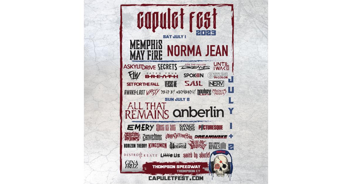 This year, the Capulet Music Festival will be held at the Thompson Speedway Motorsports Park in Thompson, Connecticut. The festival will take place on July 1st and 2nd. This year’s lineup includes some of the biggest names in the music industry, including headliners Memphis May Fire, All That Remains, Norma Jean, Anberlin plus more.