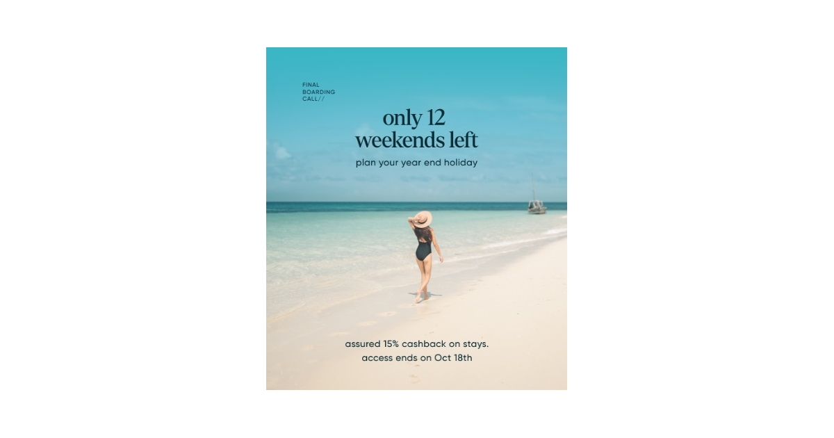 - In addition to unbeatable offers, members will receive up to 15% cashback on booking their year-end travel