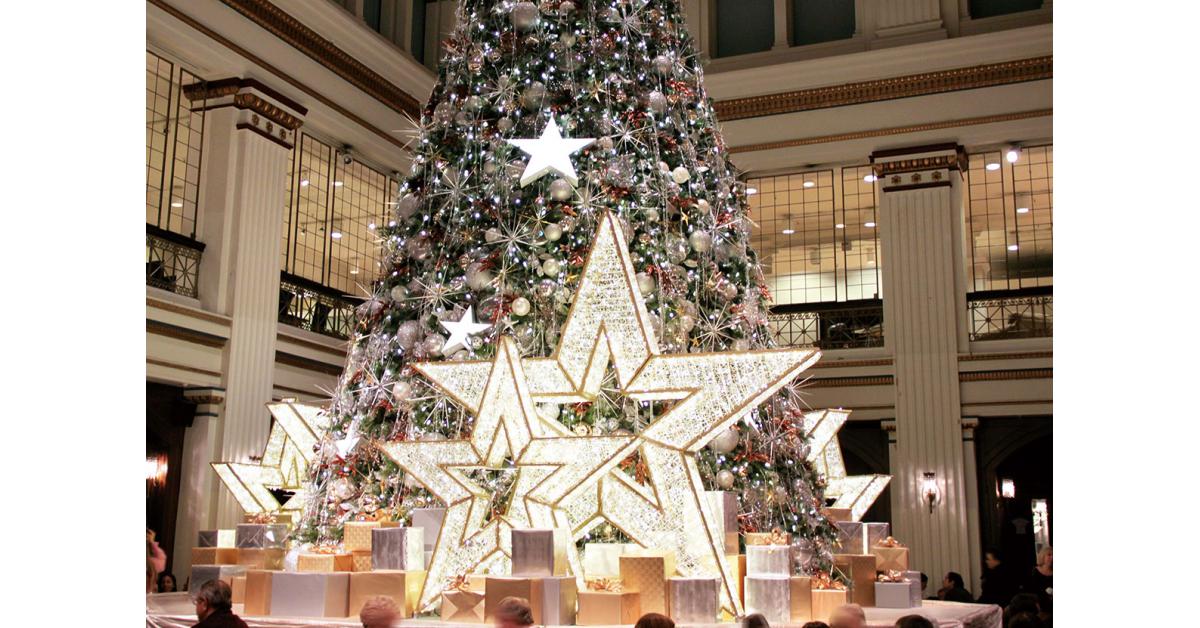 Custom-designed Christmas tree surrounded by the twinkling lights of the elegant Waterloo stars.