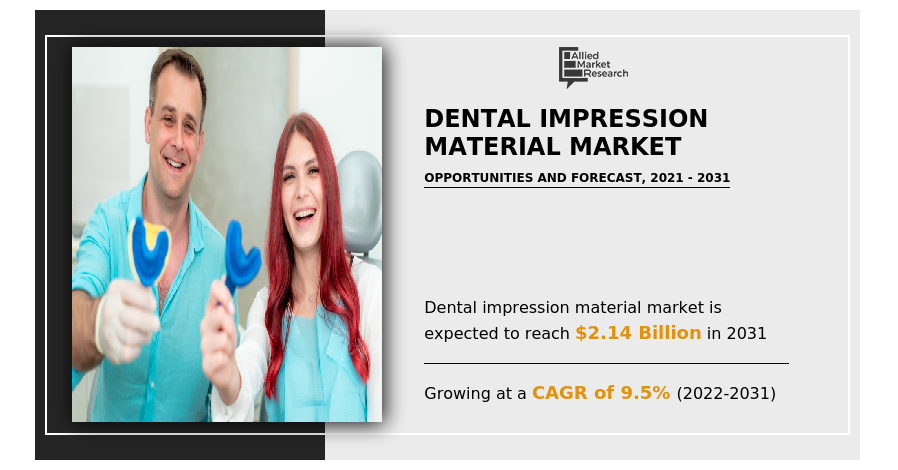 PORTLAND, OR, UNITED STATES, October 24, 2023 /EINPresswire.com/ — Allied Market Research has added a new research study on the Global Dental Impression Material Market to its repository. The study aims to provide a comprehensive assessment of the factors influencing the overall market growth trend. It covers the latest developments, insights, and disrupted trends, as well as a breakdown of Dental Impression Material products and offerings correlated with macro-economic headwinds and slowdowns. The study evaluates quantitative statistics with qualitative reasoning related to market size, share, and growth influencing factors of the Dental Impression Material market, examining the ecosystem of dominant and emerging players before and after 2023. Dentsply Sirona, 3M, Dental Products Company, Keystone Industries, Henry Schein, Mitsui Chemicals, Parkell, Kettenbach GmbH, Ultradent Products and Zeast Dental Solutions are some of the players listed in the study.