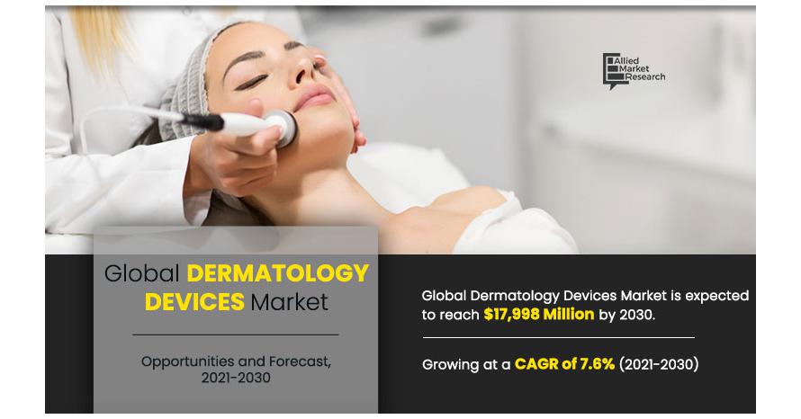 Dermatology Devices Market Statistics: The global Dermatology Devices market size is projected to reach $17,998 million by 2030, registering a CAGR of 7.6% from 2021 to 2030.
