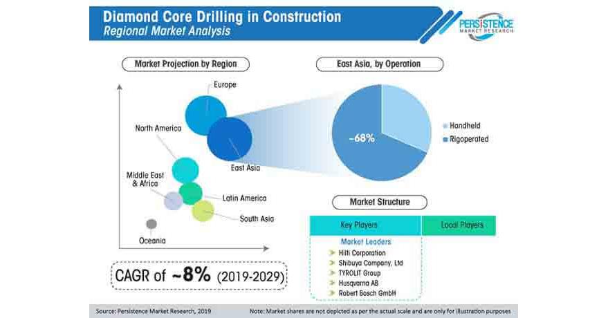 The Europe and East Asia markets for diamond core drilling in building collectively accounted for half of the entire income in 2018.