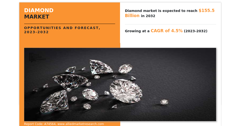 PORTLAND, 5933 NE WIN SIVERS DRIVE, #205, UNITED STATE, October 7, 2023 /EINPresswire.com/ — According to a new report published by Allied Market Research, titled, “Diamond Market,” The Diamond Market Size was valued at $100.4 billion in 2022, and is estimated to reach $155.5 billion by 2032, growing at a CAGR of 4.5% from 2023 to 2032.