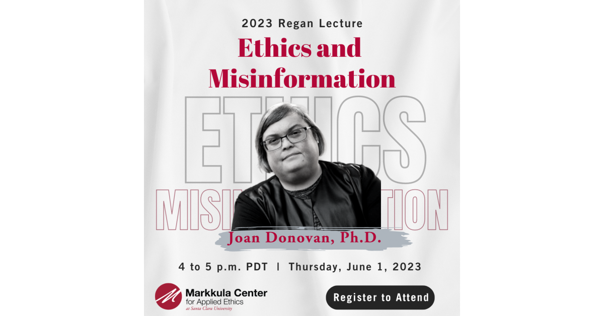 In this hybrid event hosted by the Markkula Center for Applied Ethics at Santa Clara University, Dr. Joan Donovan speaks about the philosophical frameworks for how to research, report on, and understand misinformation, and this ethical moment in both internet history and American politics. Donovan’s conceptualizations of strategic silence, meme wars, and media manipulation campaigns provide crucial frameworks for understanding how the U.S. got to this point. She coined many of the terms that the disinformation research field and mainstream media use to understand technology’s impact on society.