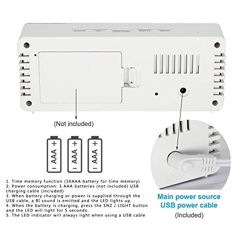 USB Supply & Batteries Powered: 2 power supply way for more convenient use, USB plug in or used 3 AAA battery(not included) powered. When Battery Powered, you need to press any button to see the time to save power; When USB Cable Plug In, the clock will keep bright all the time.