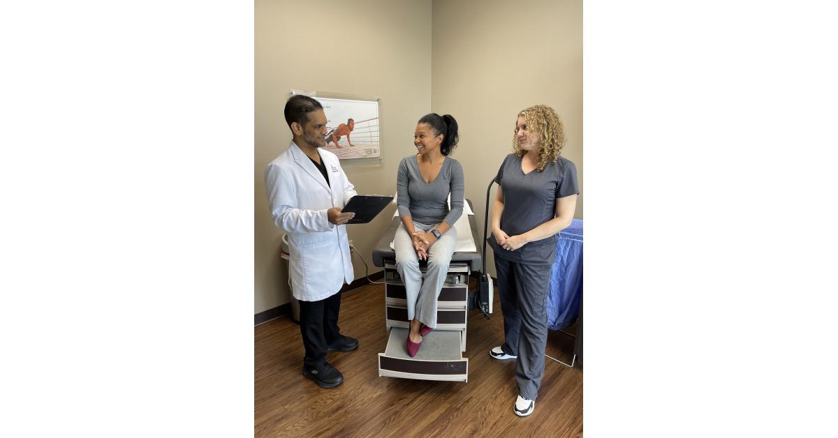 Dr. Christopher Walker and group member meet with affected person at UroGyn Specialists of Florida