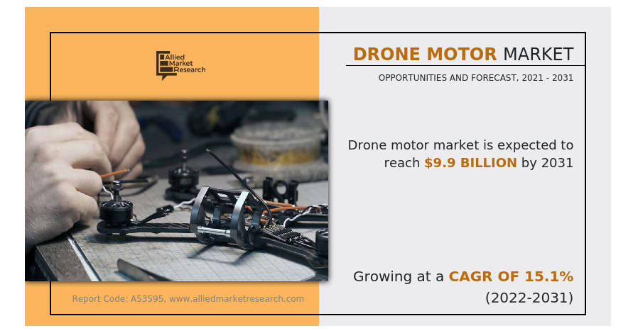 PORTLAND, OR, UNITED STATES, March 20, 2023 /EINPresswire.com/ — According to a new report published by Allied Market Research, titled, “Drone Motor Market” was valued at $2.6 billion in 2021, and is estimated to reach $9.9 billion by 2031, growing at a CAGR of 15.1% from 2022 to 2031.