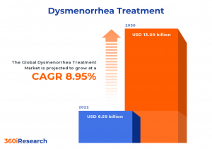 The Global Dysmenorrhea Treatment Market to grow from USD 6.59 billion in 2022 to USD 13.09 billion by 2030, at a CAGR of 8.95%.