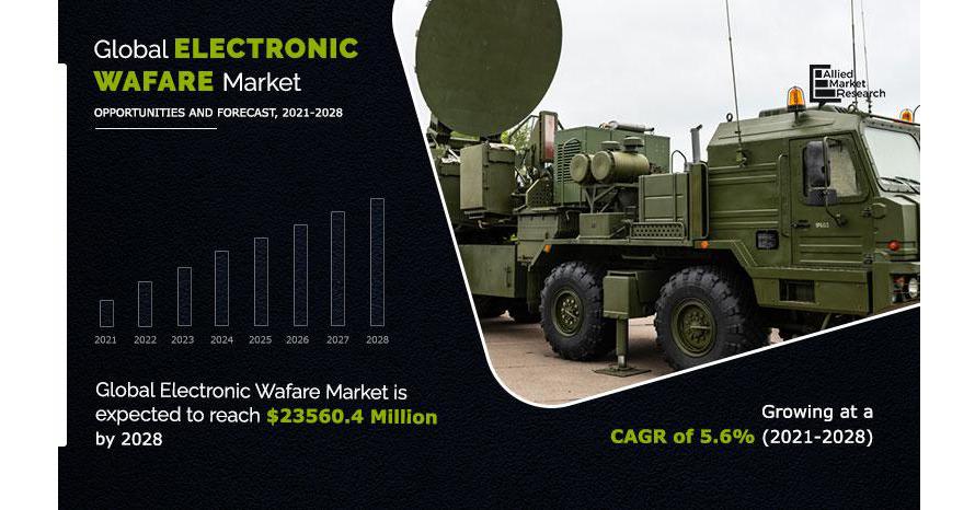 As per the report published by Allied Market Research, the global electronic warfare market size generated $15.81 billion in 2020, and is estimated to reach $23.56 billion by 2028, growing at a CAGR of 5.6% from 2021 to 2028.