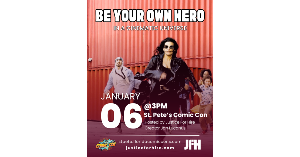 ST. PETERSBURG, FLORIDA, USA, January 2, 2024 /EINPresswire.com/ — ReelwUrld™, the trailblazing cinematic social network, is a featured panelist at the upcoming St. Pete Comic Con. This engaging panel, headlined by Jan Lucanus, the creative force behind Justice For Hire (JFH), will explore the unique concept of the JFH series – an innovative blend of entertainment and audience participation. The panel is scheduled for Saturday, January 6, 2024, from 3pm to 4pm.
