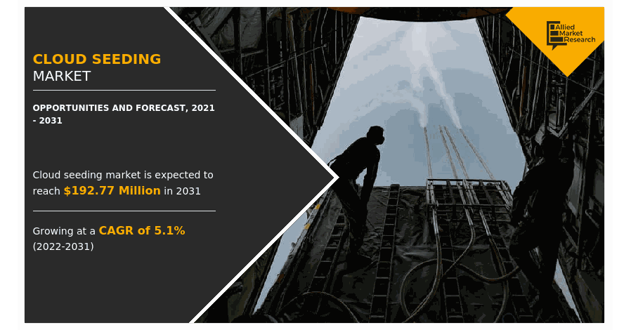 OREGAON, PORTLAND, UNITED STATES , November 24, 2023 /EINPresswire.com/ — Allied Market Research published a report, titled, “Cloud Seeding Market by Type (Aerial Cloud Seeding, Ground Based Cloud Seeding), by Application (Increasing Precipitation, Mitigating Hail Damage, Dispersing Fog), by Flare (End Burning Flares, Ejection Flares, Automatic and Remote Based Generator, Manual Generator, Flare Trees), by Seeding Technique (Hygroscopic, Glaciogenic ): Global Opportunity Analysis and Industry Forecast, 2021-2031”. According to the report, the global Cloud Seeding industry generated $120.35 million in 2021, and is anticipated to generate $192.77 million by 2031, witnessing a CAGR of 5.1% from 2022 to 2031.