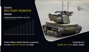 PORTLAND, OR, UNITED STATES, May 30, 2023/EINPresswire.com/ — According to a recent report published by Allied Market Research, titled, “Military robots Market by Application, Mode of Operation, and Platform: Global Opportunity Analysis and Industry Forecast, 2021–2030,” the global military robots market was valued at $17.55 billion in 2020, and is projected to reach $34.61 billion by 2030, registering a CAGR of 7.4%.