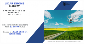 PORTLAND, OR, UNITED STATES, April 17, 2023 /EINPresswire.com/ — According to a new report published by Allied Market Research, titled, “LiDAR drone Market,” The lidar drone market was valued at $0.15 billion in 2021, and is estimated to reach $1 billion by 2031, growing at a CAGR of 22.1% from 2022 to 2031.