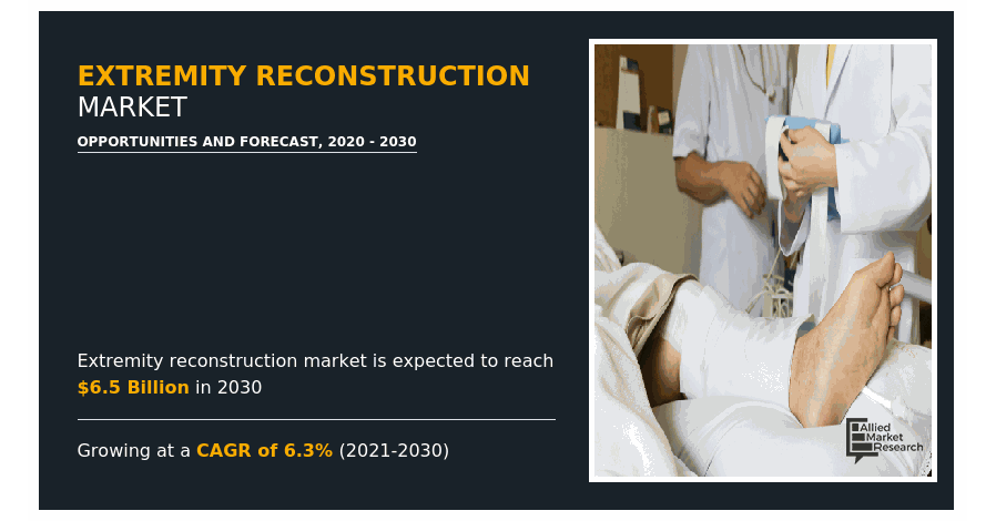 PORTLAND, OREGON, UNITED STATE, August 21, 2022 /EINPresswire.com/ — The international extremity reconstruction market was valued at $3.6 billion in 2020, and is projected to succeed in $6.5 billion by 2030, rising at a CAGR of 6.3% from 2021 to 2030. Extremity reconstruction gadgets are used to deal with, restore, substitute, or heal extremity accidents, comparable to fractures or harm. The extremity reconstruction market measurement covers implant gadgets for the shoulder, elbow, wrist, digits, foot, and ankle joints.