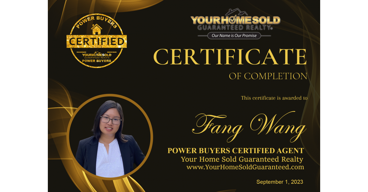 ROSEMEAD, CA, UNITED STATES, September 1, 2023/EINPresswire.com/ — Fang Wang proudly announces her successful completion of the prestigious YHSGR POWER BUYER Agent Certification program, marking a significant achievement in her real estate career. With this certification, Fang Wang is well-prepared to enhance the real estate experience for her clients in today’s competitive market.