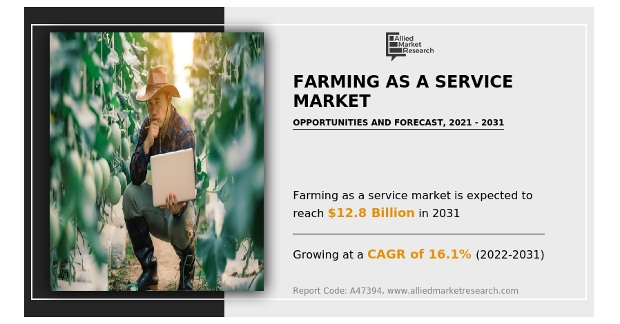 According to a recent report from Allied Market Research titled “Farming as a Service Market,” the market was valued at $2.9 billion in 2021 and is forecasted to reach $12.8 billion by 2031, growing at a notable CAGR of 16.1% from 2022 to 2031.