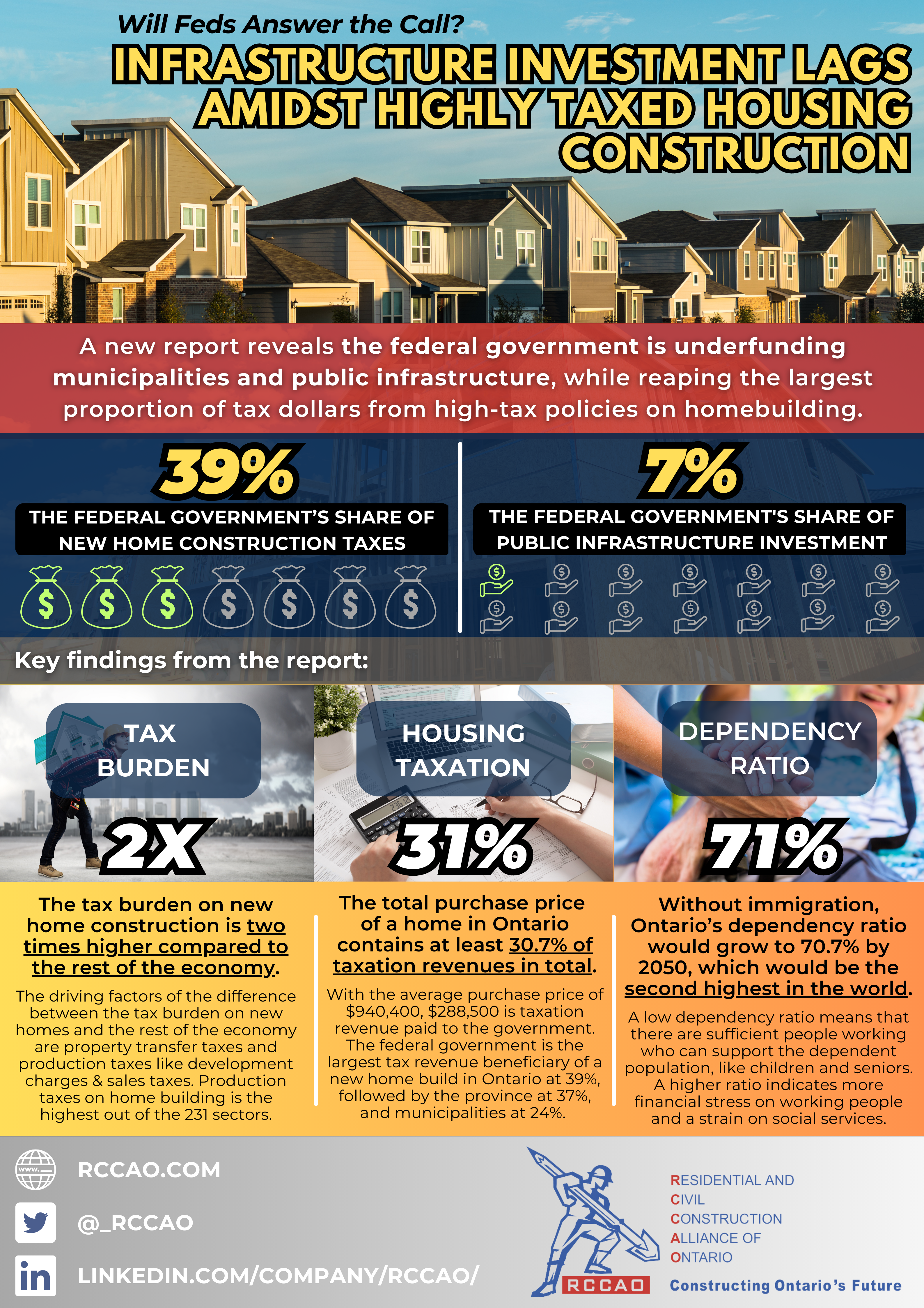 - 39% – The federal government’s share of new home construction taxes, while only investing 7.1% in public infrastructure.