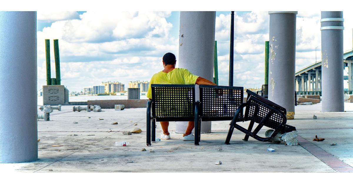 Days after Hurricane Ian had passed, as I set out to journey through Fort Myers, I found myself at the Fort Myers Pier, unsure of what to expect. The scene was one of utter devastation – debris scattered everywhere, parts of the pier twisted and bent by the storm’s fury. Amidst this chaos, I saw this gentleman, the metal bench he sat on previously, now a contorted reminder of the storm’s might.
