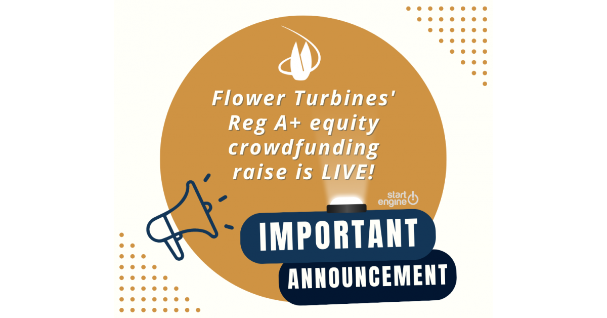 Flower Turbines share purchase under Regulation A has begun at https://www.startengine.com/offering/flowerturbines