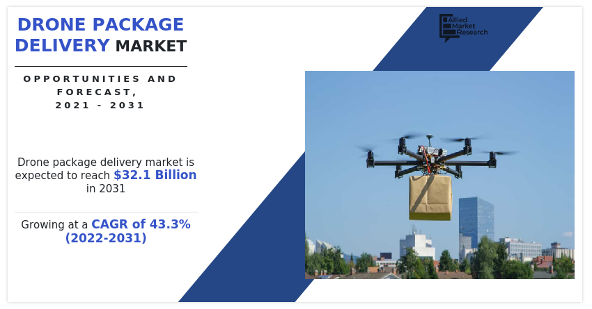OREGAON, PORTLAND, UNITED STATES, April 17, 2023 /EINPresswire.com/ — According to the report published by Allied Market Research, the drone package delivery market generated $0.94 billion in 2021, and is projected to reach $32.1 billion by 2031, growing at a CAGR of 43.3% from 2022 to 2031. The report offers a detailed analysis of the top winning strategies, evolving market trends, market size and estimations, value chain, key investment pockets, drivers & opportunities, competitive landscape and regional landscape. The report is a useful source of information for new entrants, shareholders, frontrunners and shareholders in introducing necessary strategies for the future and taking essential steps to significantly strengthen and heighten their position in the market.
