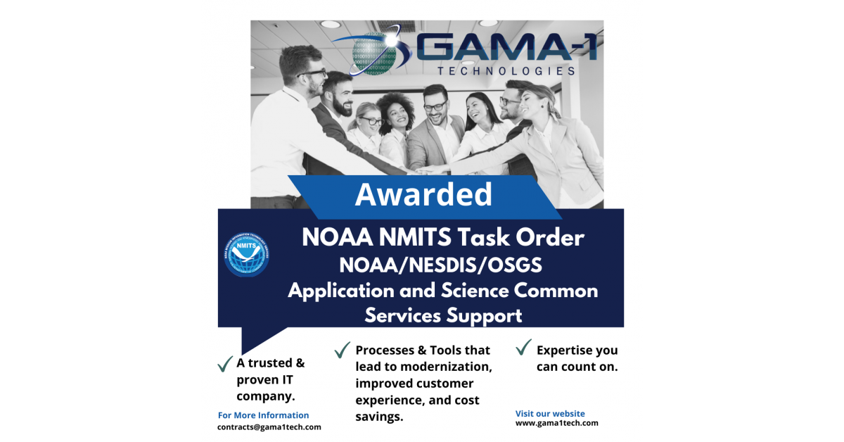 WASHINGTON, DC, UNITED STATES, October 11, 2022 /EINPresswire.com/ — GAMA-1 Technologies, LLC was awarded the National Oceanic and Atmospheric Administration (NOAA) National Environmental Satellite, Data, and Information Service (NESDIS) Office of Satellite Ground Services (OSGS) Application and Science Common Services Support (ASCSS) Task Order below the NOAA Mission IT Services (NMITS) BPA. NESDIS offers safe and well timed entry to international environmental knowledge from satellites and different sources to advertise and shield the Nation’s safety, setting, economy, and high quality of life.