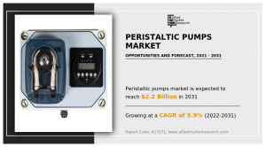 global peristaltic pumps market was valued at $1.2 billion in 2021, and is projected to reach $2.2 billion by 2031, growing at a CAGR of 5.9% from 2022 to 2031.