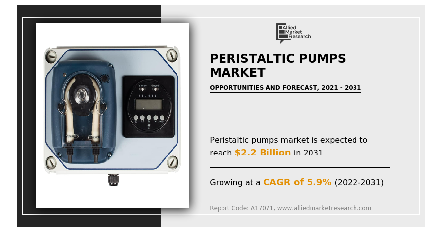 global peristaltic pumps market was valued at $1.2 billion in 2021, and is projected to reach $2.2 billion by 2031, growing at a CAGR of 5.9% from 2022 to 2031.