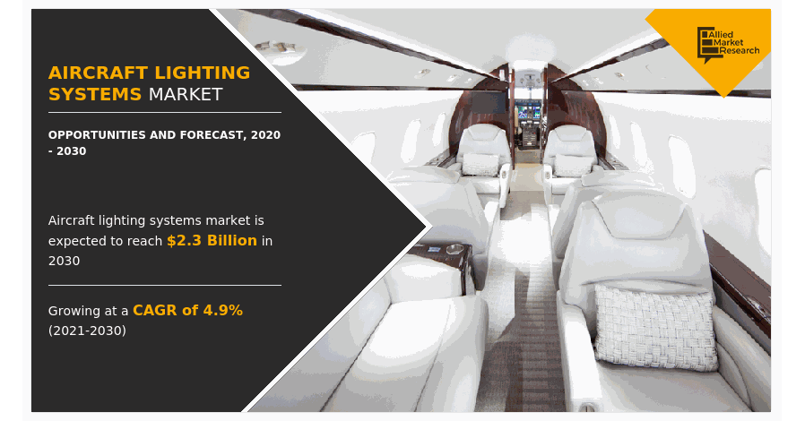 PORTLAND, OR, UNITED STATES, September 20, 2023/EINPresswire.com/ — According to a new report published by Allied Market Research, titled, “Aircraft Lighting Systems Market,” The aircraft lighting systems market was valued at $1.5 billion in 2020, and is estimated to reach $2.3 billion by 2030, growing at a CAGR of 4.9% from 2021 to 2030.