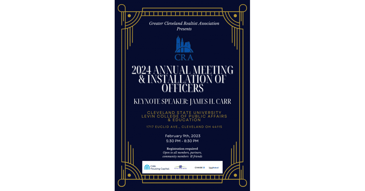 CLEVELAND, OHIO, UNITED STATES, January 30, 2024 /EINPresswire.com/ — The 2024 Annual Meeting and Installation of Officers of The Greater Cleveland Realtist Association (GCRA) will be held on Friday, February 9, 2024, at 6:00 p.m. at Cleveland State University Levin College of Public Affairs and Education.