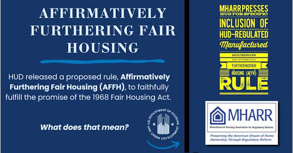 MHARRpressesHUDforSpecificInclusionOfHUD-RegulatedManufacturedHousingInNewAffirmativelyFurtheringFairHousingAFFHruleManHousingAssociationRegulatoryReform