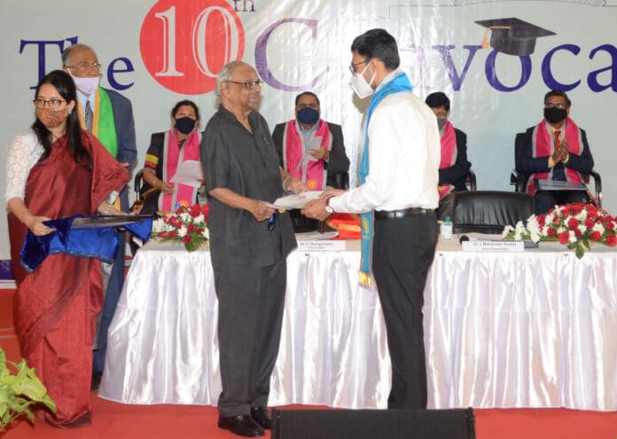 Dr C Rangarajan, Chancellor of the University, presided over the function and delivered the Convocation address. Congratulating the graduating students, Dr Rangarajan said, “This is an occasion for celebration for all of you, as your academic efforts have come to a successful fruition. As you enter a new stage in your life, your future is intertwined with the future of this country. But, at the same time, you have the opportunity to shape it. Youth is full of idealism and ambition. Idealism without ambition may not achieve much. On the other hand, ambition without idealism is dangerous. May you combine the two in the right proportion!”